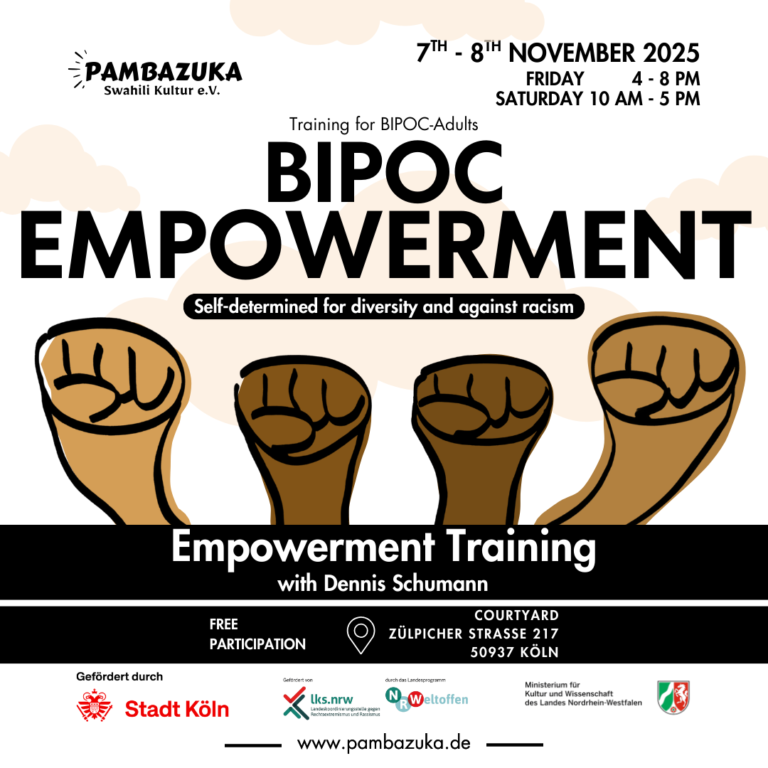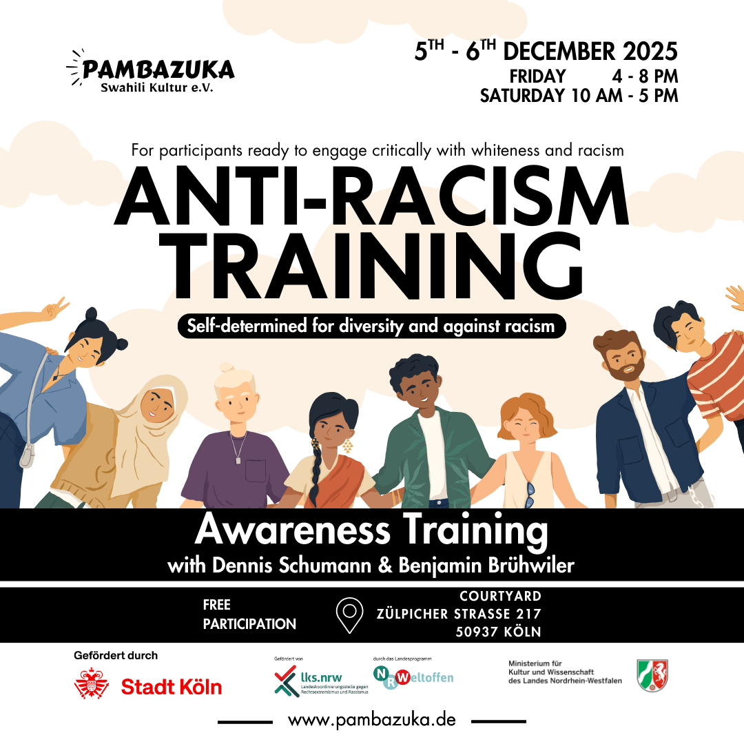 Am 12. Januar 2025 luden wir alle Mitglieder des Pambazuka Swahili Kulturvereins ab 13 Uhr zu unserer jährlichen Mitliederversammlung im Allerweltshaus ein. Die Versammlung startete um 13.30 Uhr. Um Mitglied zu werden, kann hier der Aufnahmeantrag zur Mitgliedschaft runtergeladen werden. Bitte ausfüllen und einsenden an pambazukaswahili@gmail.com. -